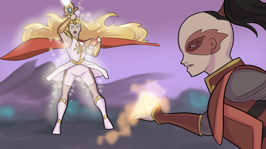 or "My Superpowered Girlfriend Can Kick Your Superpowered Girlfriend's Ass"Just Catra and Asami trading what-ifs about their respective significant others. This was borne out of a minor discussion comment on Twitter, and it led to me drawing this.