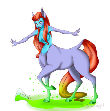 There were shelves upon shelves of strange liquids in glass flasks of all shapes and sizes. She had to squint from the glow coming from a rainbow of different colored liquids, labelled with unfamiliar words and symbols. Some kind of code, she mused. On one shelf was an array of green and blue and yellow liquids, and she remembered the centauress' testimony, that she was bathed in some kind of glowing yellow water. Could this be what she needed?