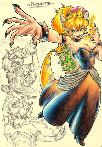With everyone off doing their own Bowsette fanart from the past week or so, some even proceeding to put the Super Crown on other characters to create other versions of Peachette, I decided to go the other direction, and just create an original Koopa Princess of my own! Her design is strongly influenced by the Koopalings, and a bit of Bowser's original Famicom artwork, where he looked like he wore a mohawk for his hair.