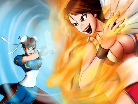 “Sorry I’m late, Ryu-san! I’ve been busy.”Now THIS was fun to work on. Continuing with my "development" of Sakura as a Street Fighter V character, I put her through some training! Now if only she'd appear in the game for real, I'd be happy.