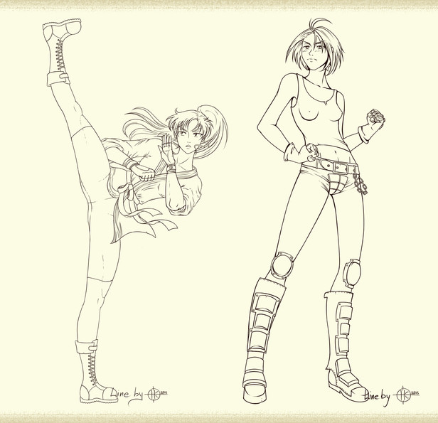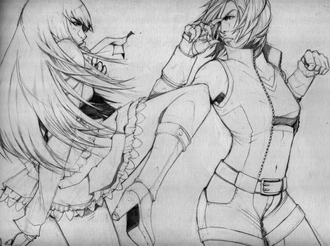 Anyway, here's the line art! These two make for a good match-up when you think about it, since Asuka has a counter hold in her movelist, which is also an integral part of the DOA fighting system.