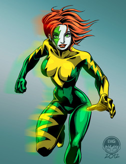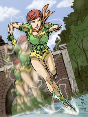 This is the colored version of the Velocity #4 fan cover that I posted near the beginning of this year.As of this writing, the actual issue has been scheduled for release this coming Wednesday. The release was actually delayed for the past few months, but I've had no problem waiting on account of one of my favorite characters being paired up with one of my favorite artists! Sometimes though, it seemed as if this book was waiting for me to actually get around to coloring this pic before it finally came out!