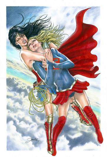 Diana and Barbara share a quick moment before the battle is rejoined…Wonder Woman and Batgirl were the top two results of my Yuri Couple poll. This is actually quite subtle as far as yuri content goes, but it was something that seemed closer to both characters.
