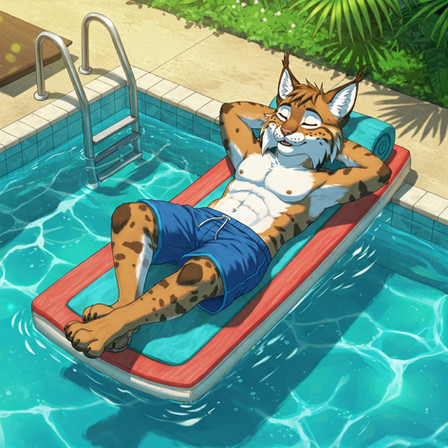#anthro #big #cat #felid #feline #grass #hammock #hot #leopard #pool #relaxing #shade #shadow #snow #sun #sunlight #warm #digitalpainting #fantasy