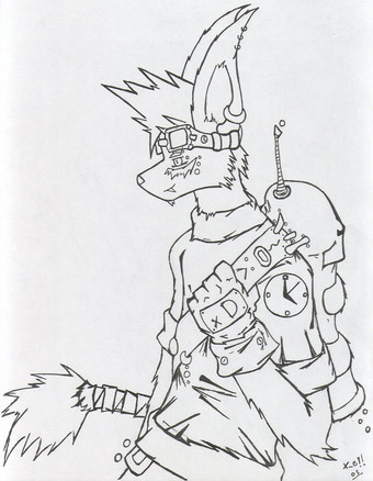 GUH! *Falls over onto his back and faints* There! Finally finished coloring it! God .. this had to be the hardest thing to color EVAR. Why? Mainly because I didn't know what to color him. Every single color detail was a complete random mistake! ( except for his hair. I told a friend I'd make something on this character pink ) The shirt was the last thing I colored .. and probably the hardest to pick what color to do it. I spent most of yesterday hassling people on AIM "Hey, do you have any color sense? really? well .. what color should his shirt be". and I swear to god I got a different answer each time! That, did not help.*coughs*