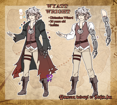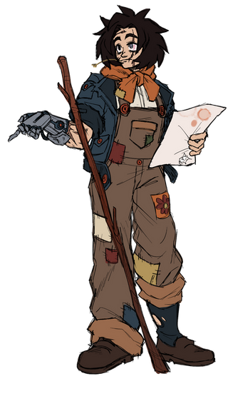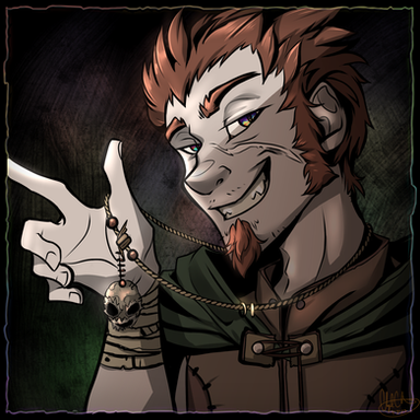 He is as cocky and dirty as he looks. He's constantly picking on our poor inquisitor whom always seems to be a step away from putting a bullet in his skull. As far as we know in the game, he was a gypsy that traveled around with his caravan and was wrongly accused of murder. The night he was exiled was the same night that the entire company was burned to the ground.