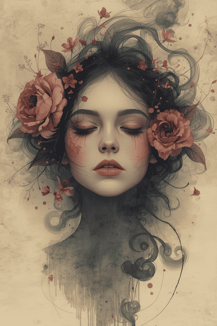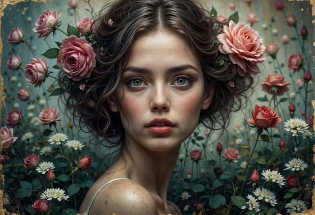 #portrait #beauty #digitalpainting #ai #dreamup #digitalart #portraitgirl #characterdesign #photography #floral #brunettegirl #rosesflowers #ai_art