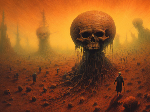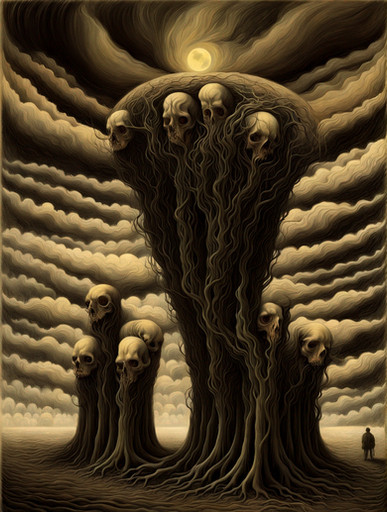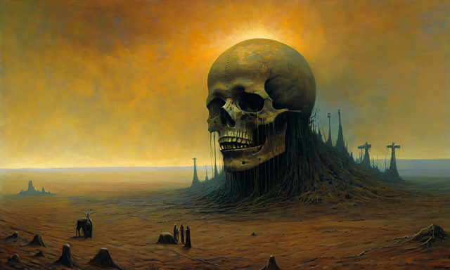 #digitalart #digitalpainting #horror #ai #dreamup #surreal #skull #apocalyptic #fantasyart #monster #creepy #bleak #body #death #decay #decaying #desolate #distorted #disturbing #dystopian #flesh #gothic #grotesque #illogical #landscapescenery #photography #skeletal #surrealist #ai_art