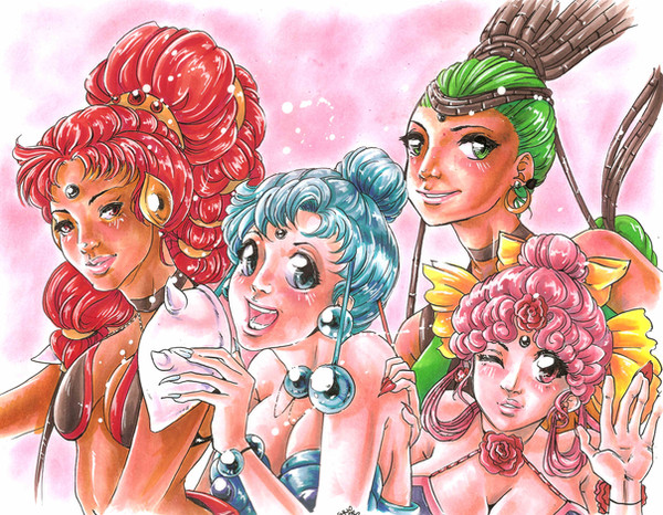 Hey, it's the Amazoness Quartet! I'm happy you drew them, becuase they're my favorite Sailor Moon villains. It's too bad they don't get a whole lot of attention, but they're so cute and funny. They look very cute here