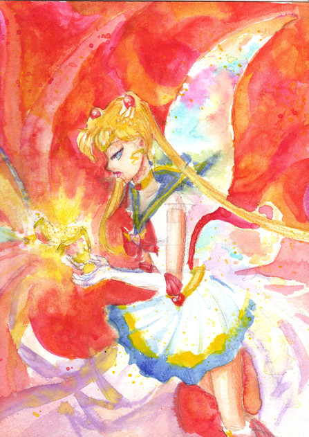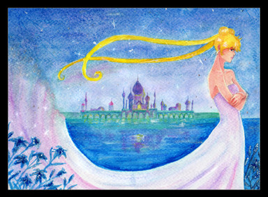 This is a painting I did...With PAINT! amazing huh? I did a little bit of photoshop work to hid the holes on the side of the page but really, other than that, it's totally by hand.Princess Sailor Venus sits and stares at her Beautiful Magellan castle over her own vast land. She thinks and wonders at her purpose. It's all before the Moon kingdom and the Silver Millennium is destroyed. I hope she gained wisdom.