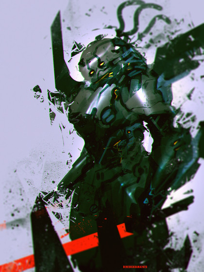 o enjoy this color technique a lot as for the design of the robot monster thing lol. i really think its great the shoulder, chest and head area are really great i could imagine this coming after me or something! well done and i hope your project went well or is going well with laslolf