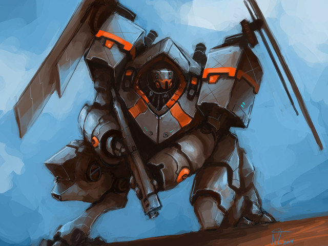 #conceptart #digitalart #digitalpainting #drawing #enforcer #flying #mecha #progress #robot #scifi #wip