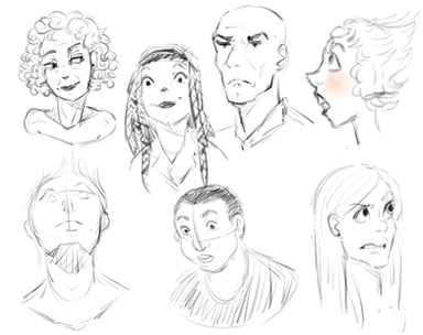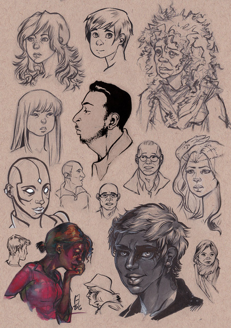 Wow, I've almost never seen you draw human faces before. Judging from your style with robots I'd thought you would go for a more Ashley Wood style, but these are surprisingly pleasant. Nice work.
