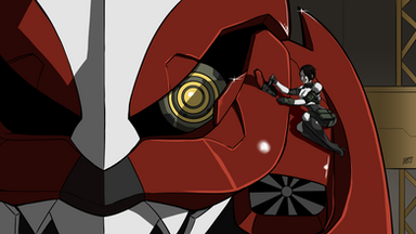 I cannot tell you how much I am loving on this mech, and the title for the piece, they go together so well. Very smooth and sturdy action lines and how he's off to the side -- er, it, is very nice. It is a semi organic creature or entirely mechanical?