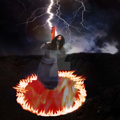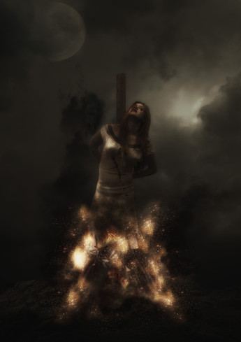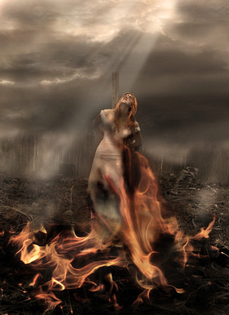 I absoultely love the lighting on this piece... the fire looks like it's really there... and the woman's serene expression is a little strange and frightening.... but still holds some fear.