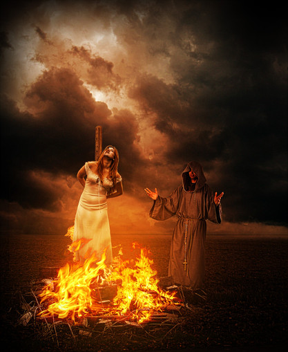 Sexual terror directed at women. Burning at the stake is a metaphor for rape. Β