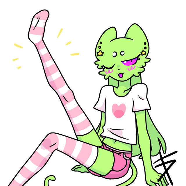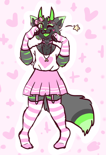 #anthro #cat #feline #femboy #feminine #furry #alien #anthropomorphic #bulge #croptop #crossdressing #eyelashes #facehugger #lipstick #miniskirt #panties #skirt #thighhighs