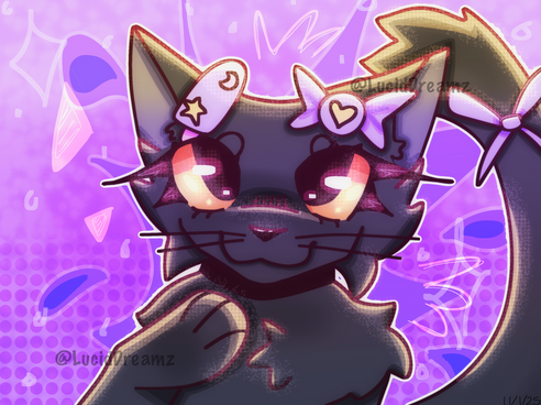 #cat #digitalart #anthro #anthropomorphic #beans #eyelashes #eyes #feline #femboy #feminine #furry #girly #hair #lipstick #makeup #nails #orange #pink #star #teeth #text #tongue #gradienthair