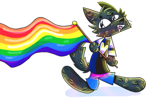 #anthro #armwarmers #cat #feline #femboy #feminine #flag #furry #girly #hair #longhair #male #pansexual #pride #solo #tailwarmer #thighhighs