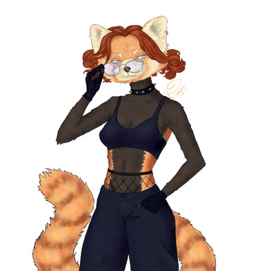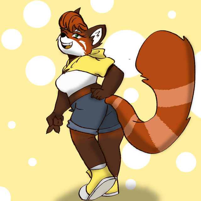 #digitalart #anthro #anthropomorphic #blush #blushing #boobs #bracelet #breasts #dress #earing #eyelashes #female #furry #hair #heart #lip #lips #panda #pretty #red #redpanda #smile #smiling #tail #redpandagirl #croptopshirt