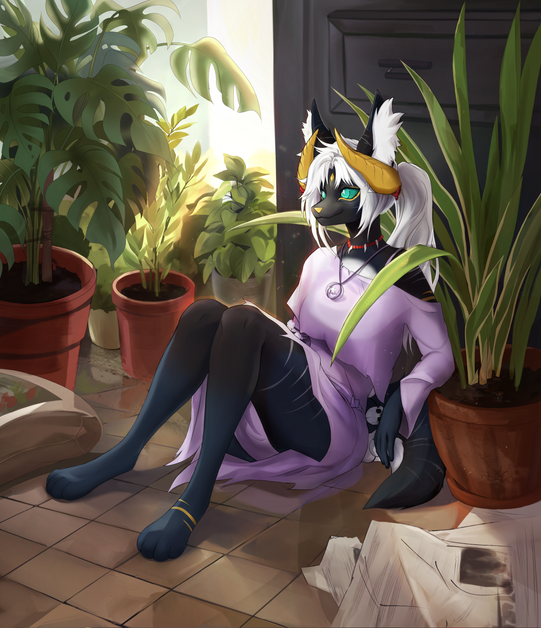 #anthro #cat #eyelashes #feline #femboy #feminine #furry #lipstick #plants #anthrofurry #anthropomorphic #bench #furryanthro #sitting