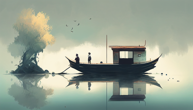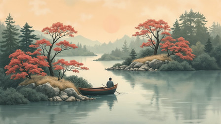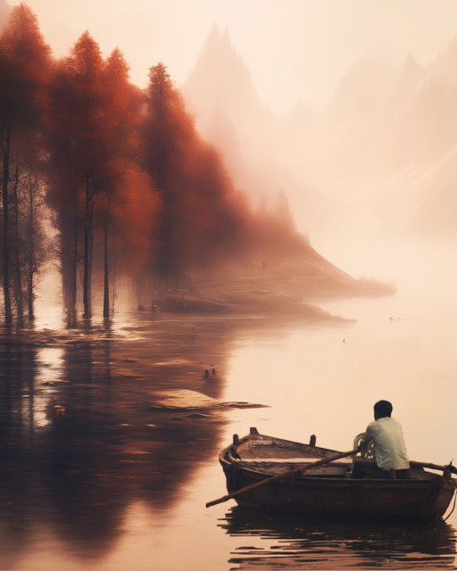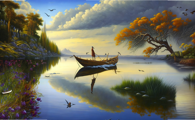 #digitalart #digitalartwork #lake #landscape #landscapepainting #reflection #stunning #aiart #reflectionswater #stunningviews #landsapefantasy #fisherman