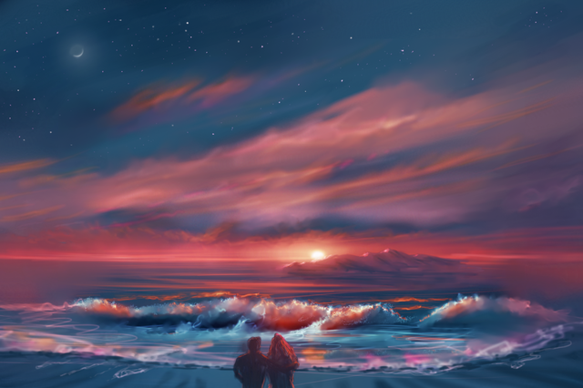 #beach #boy #cute #digitalart #digitalartwork #digitalpainting #girl #landscape #landscapepainting #man #night #ocean #painting #stunning #aiart #stunningviews #sunrise #oceanlandscape