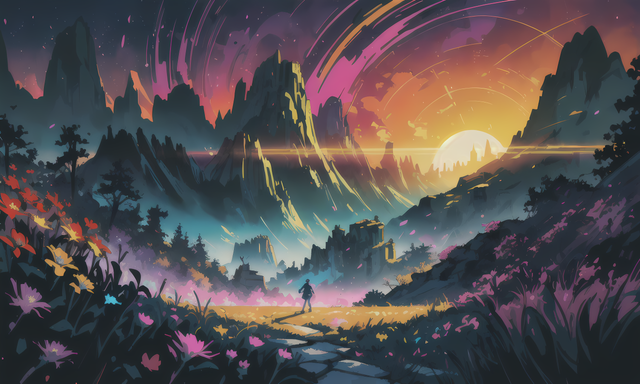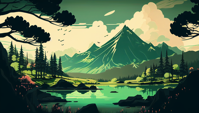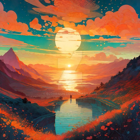 #digitalart #digitalartwork #digitallandscape #greenhillzone #landscape #landscapepainting #mountainlandscape #mountains #illustrationdigital #aiart #sunset