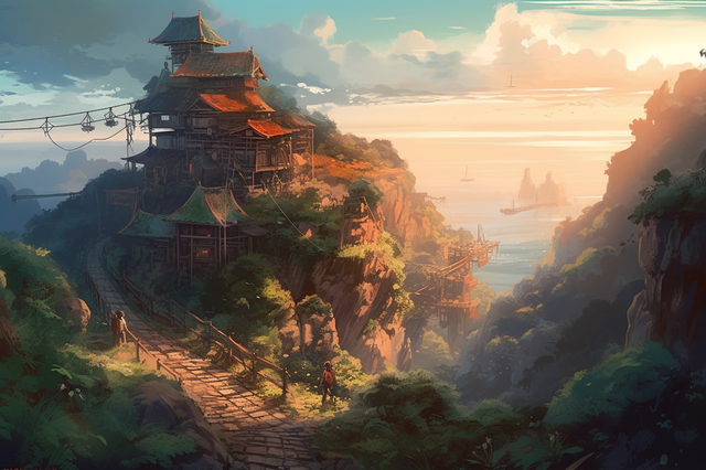 #adventure #architecture #architectureart #digitalart #digitalartwork #landscape #landscapepainting #trees #aiart #landsapefantasy #asian #green