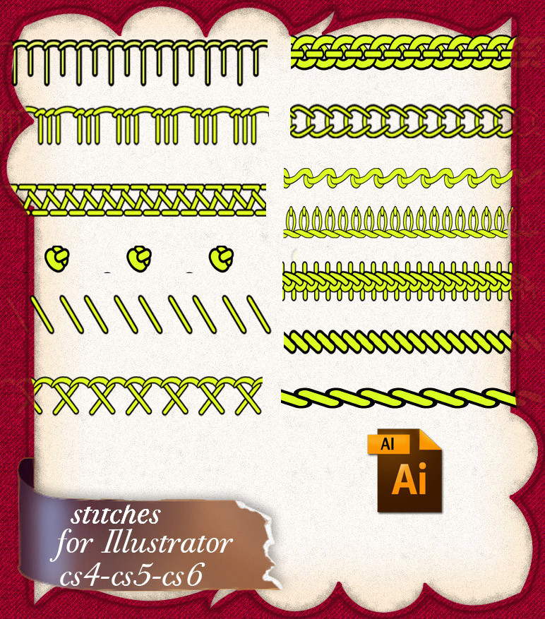 Pamzylove [link] was asking for some examples of the stitch brushes I used in some of my art. I decided to post a few methods. These are just a few different ways you can create stitch style brushes in Adobe Illustrator.These are simplified examples to give you a starting point to try out your own ideas.