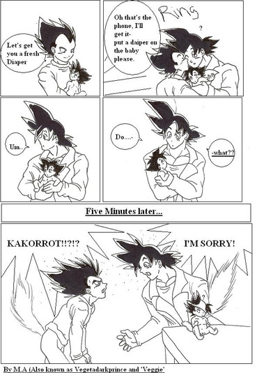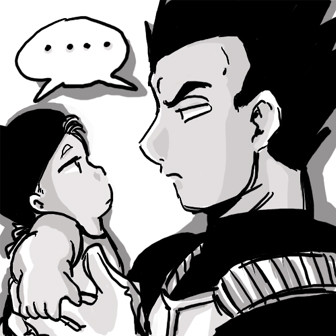 I like the expression on Goku's face as he's caught off guard by little Veg's first word, sweet pic.