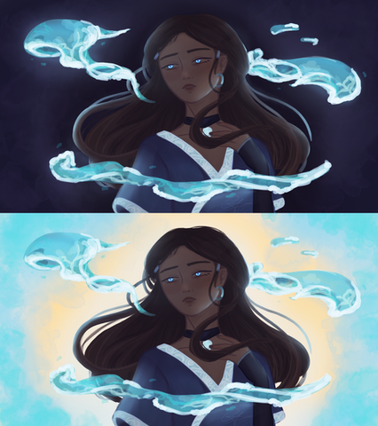 The reason I chose Katara for this practise-work is just because Avatar is my alltime favorite series and I thought I could use fire as a lightsource that way :3 Maybe team avatar is fighting some firebenders? Idk xD