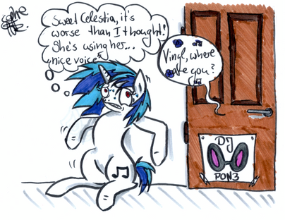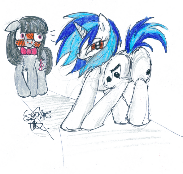 Haha! Love it. Especially Vinyl's expression, looks like she's sort of puffing her cheeks out slightly in my opinion, but maybe that's just me!