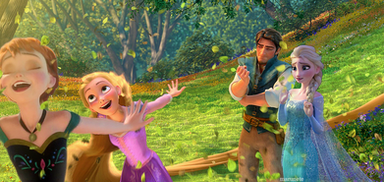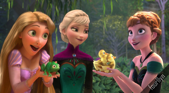 As you can probably tell, I'm in love with these inspiring women. I loved the idea of making a picture of Anna and Rapunzel outside for the first time, and somehow I ended up putting Elsa in there too, just to show how happy everyone is. I have to say, I am very proud of this oneI was thinking of adding in Merida, as she's another favorite of mine. Thoughts?