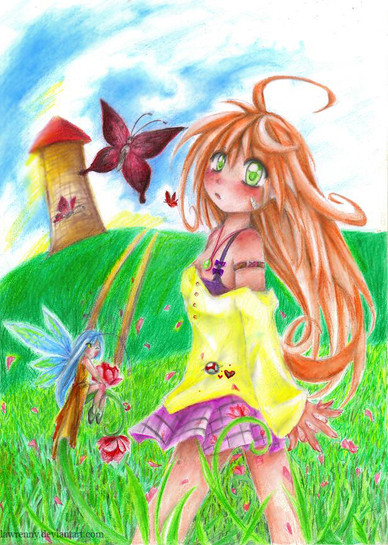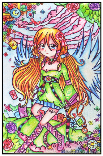 I LOVE EET. It's so beautiful and colorful~ <3 If I had been sad, I would've been so epicly cheered up! (I can't be sad because I just ate chocolate icing ) I love your coloring. ; U ;