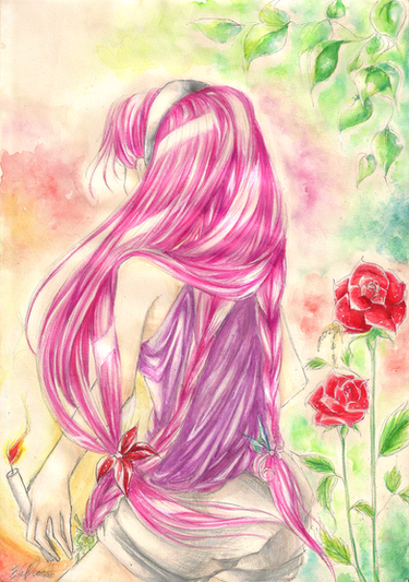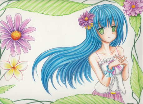 Ah I love seeing you mix traditional work with digital! I really like the colors you used in this one, they're softer and I think it matches this piece very well! I think one thing that could use improvement is the fingers. They seem a little skinny but that can easily be changed in your newer drawings! Keep up the awesome work love!