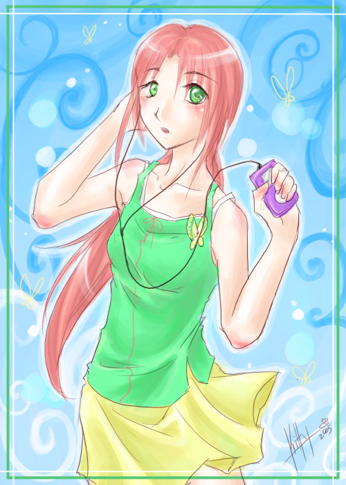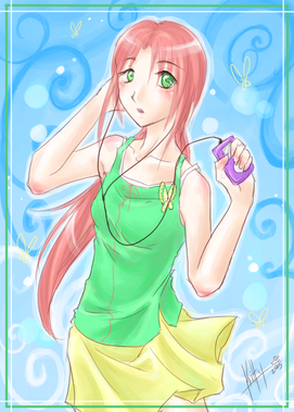 I really like how this one feels smoother, and ... more relaxed, in a sense. Or rather, it feels less ... strong, but that is good in itself. I guess what I mean is that the background is smooth and it reflects the atmosphere and mood effectively enough, although I get the impression that... I don't know. I feel as if she's feeling a bit negative, but that's just me.