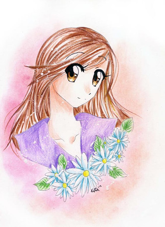This artwork was done for ^Nyiana-Sama 's 48 Hour Manga/Anime Art Contest , in which we were supposed to draw an original character along with the themes Rainbow, Roses and Smelling.