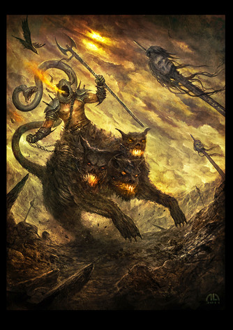 Demonic creature riding the equivalent of a hell hound, that will certainly be a striking image, especially with this quality put into it. A fine and dark piece, you have done well Velinov, very well.