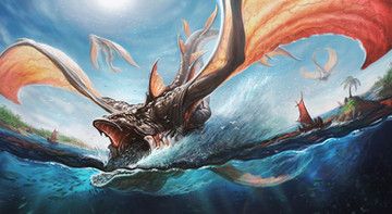 Sick, what else can describe this? The composition is perfect. The colors of the dragon stand out from the beautifully rendered water and there is a sense of vibrant movement throughout the piece.