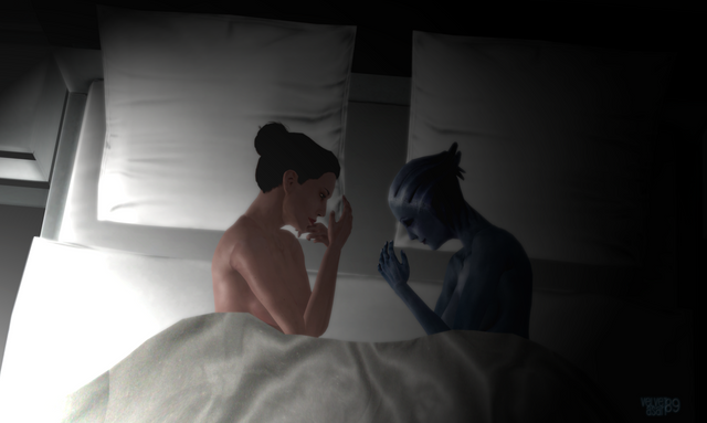 How I envisioned the final moments on the shuttle pre-beam run, before that last goodbye.But that is not all, this image was based on a video I made of my Shep and Liara. It is the "I Was Lost Without You" track with added lyrics sung by my friend Scrappy14