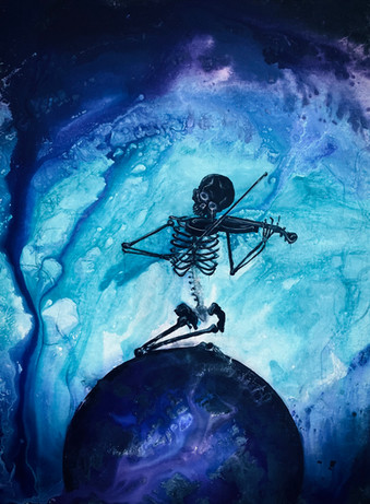 violin journey in the skythe original drawing = white crayon on black paper, but here you can see a digital photomanipulation of colours