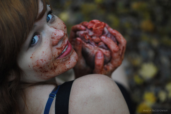this is amazing it gives you that sense of horror and scariness you know idk how you got the heart but its an amazing prop and feel to the pic. "TWO THUMBS WAY UP FOR OUR LEADING ACTRESS"