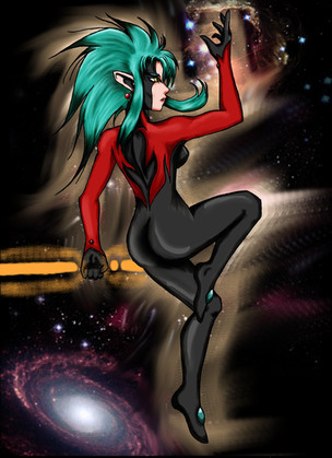 Hee hee Ryoko. I love drawing her. ^.^ This took about 3 hours to finish. I'm very proud of this. I have her on Ryo-Ohki in space... I know that if I was Ryoko and had the ability to breath in space I would go out there all the time. XDOh yeah.. dont sneak up on her... *looks at the energy in her hand* O.O;;;