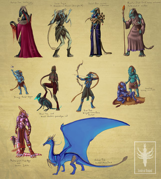 As for the art, I love your interpretations of these races. I don't remember how the races were described in books, but I remember reading about things similar to these. These drawings are very well-done! Excellent work.