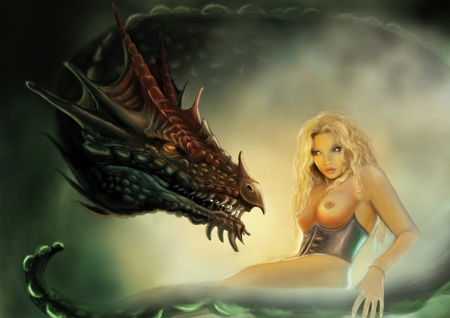 I love the creepy dragon (the teeth... brrr...), but there's something wrong with the woman.