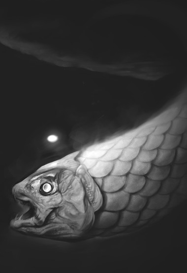 Клево, нравится атмосфера, было бы неплохо сделать анимацию с этой рыбой, мне кажется смотрелось бы неплохо, с двигающимися плавниками и пузырьками на дне, как ретро стилизованный хоррор мультик!
