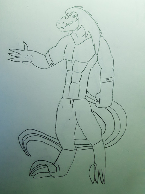 You did pretty good with the pic, the arms are too thin, mehtinks, but you did good so far. Everything is pretty well in proportion otherwise. Keep working on it.