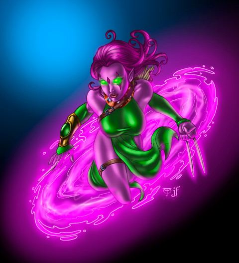 her name is Blink... from the xmen comics... hence to goofy pun in the title, lol