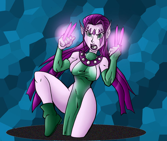 The further adventures of my attempts to learn how to color on painter...i REALLY like the way this one turned out, but as always, there's still room for improvement...in this case, i forgot how to do that Gaussian Blur thing in photoshop to add a shiny ball of light over her hand to make it seem likelight is eminating from her hand...i gotta redownload that tutorial Leblas made a while back...i think i accidentally deleted it off my computer!Oh well.. this here's is Jinx from the Teen Titans cartoon, cuz she looked retarded in the comics... no joke!